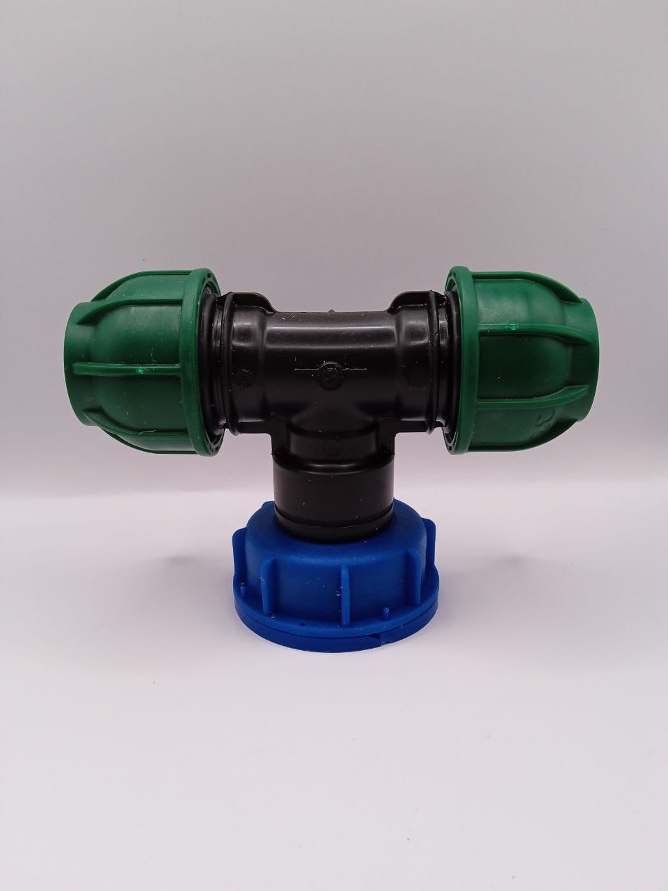 Головна Каталог Комплектуючі для Єврокубів / IBC Перехідник DN-50 на 2 труби Ø32мм