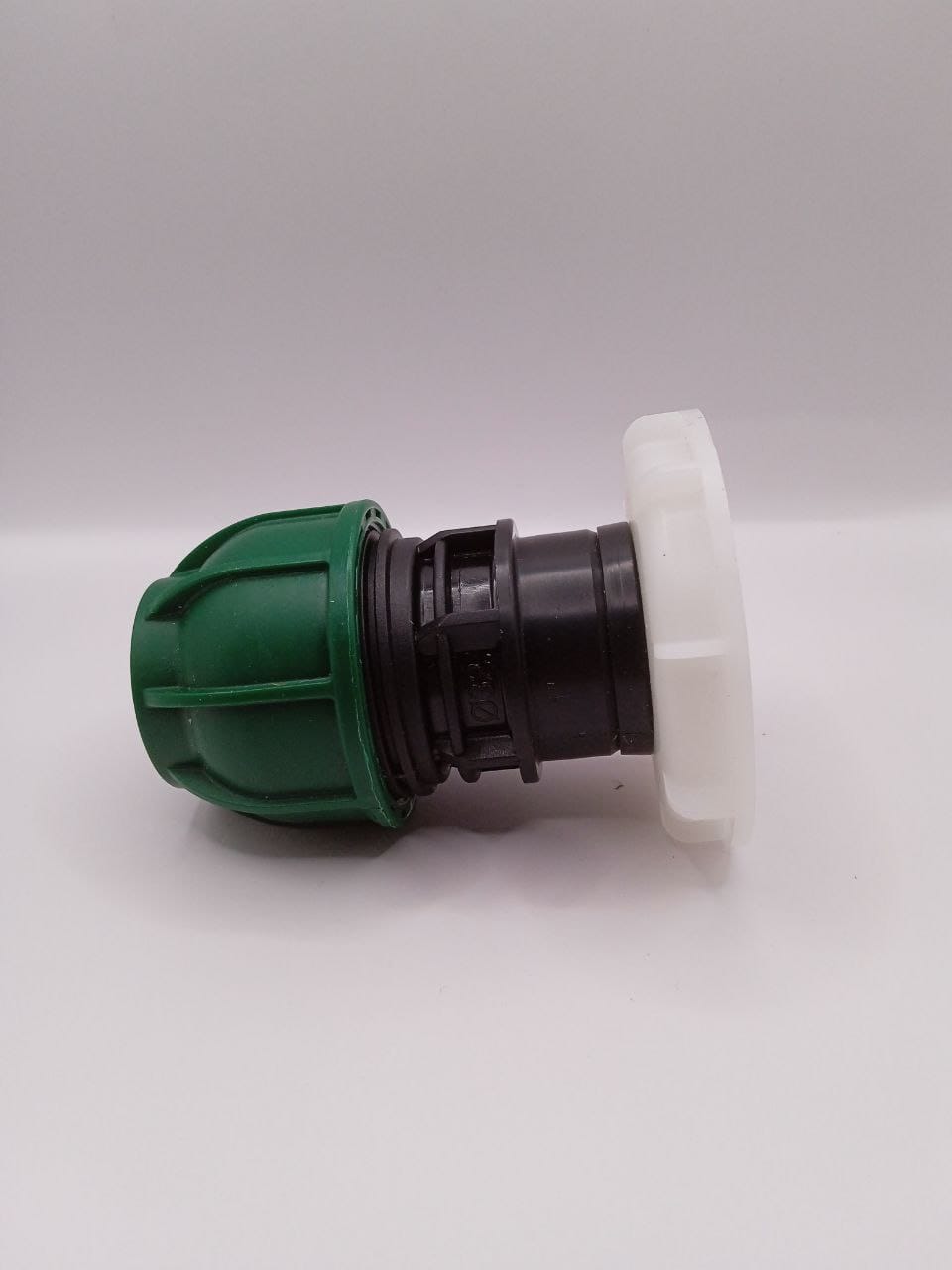 Головна Каталог Комплектуючі для Єврокубів / IBC Перехідник DN-50 на трубу Ø32мм (дрібна різьба, Ø62мм)