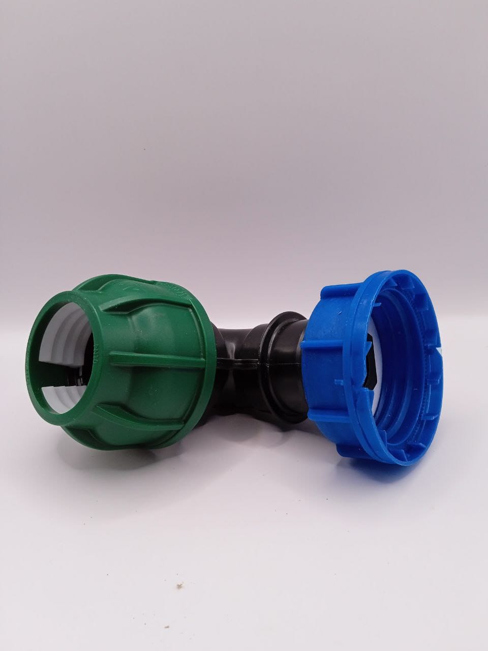Головна Каталог Комплектуючі для Єврокубів / IBC Перехідник DN-50 на трубу Ø40мм (кутовий)