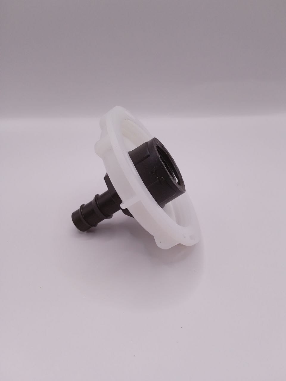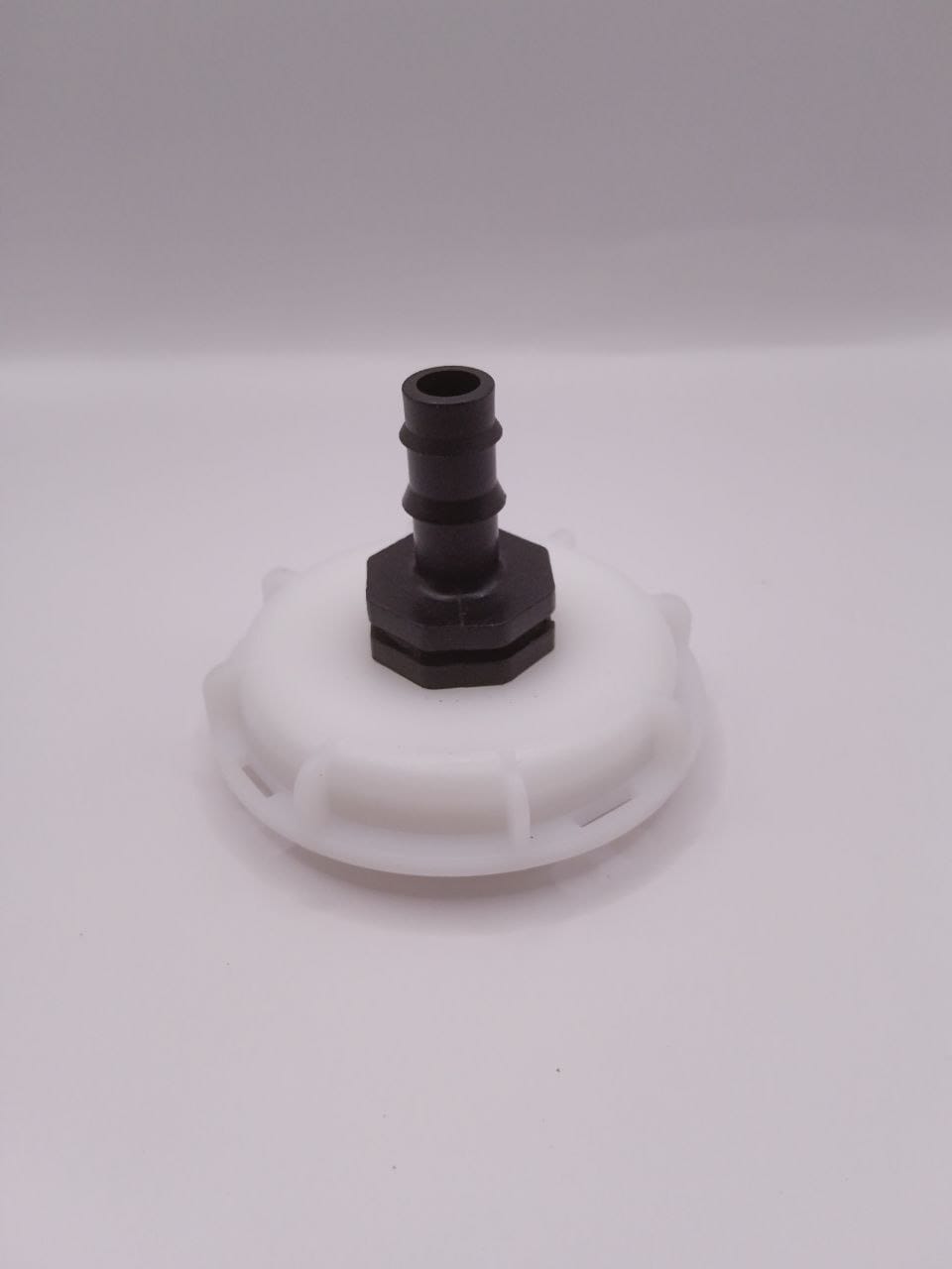 Перехідник Ø62 мм (дрібна різьба S62×5) призначений для під’єднання шланга Ø16 мм до зливного крана єврокуба IBC 1000 л із виходом Ø62 мм.